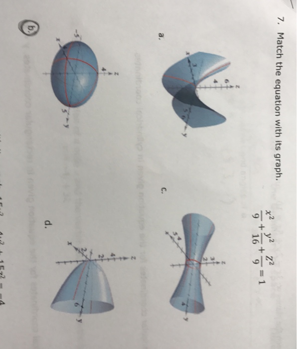 Match The Graph To The Equation 1 X 2 1 X 2 Y 2 2 Z 2 9 X 2 Y 2 3 X 1 Y 2 Z 2 4 X Sqrt Y 2 Z 2 5 Z
